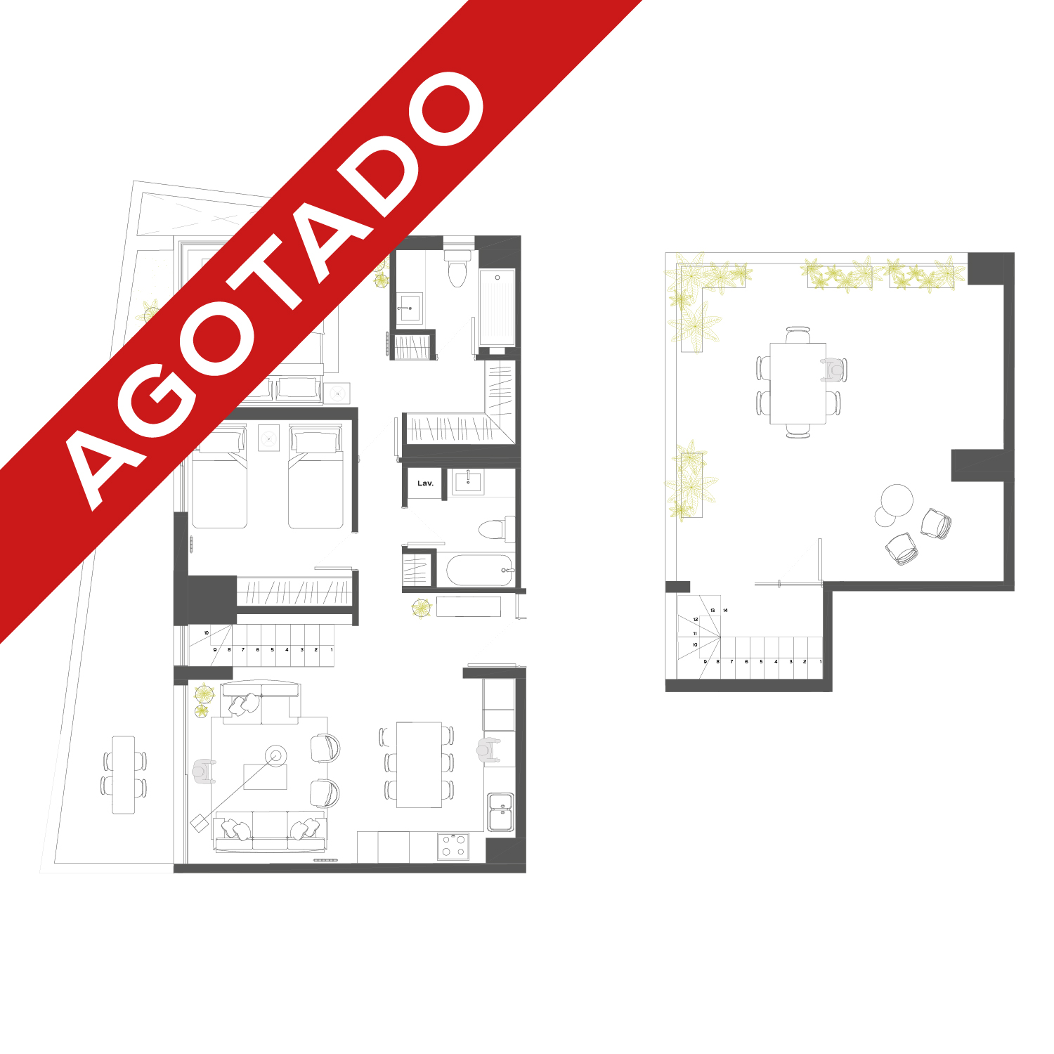 - Terrazas con barandas de cristal.