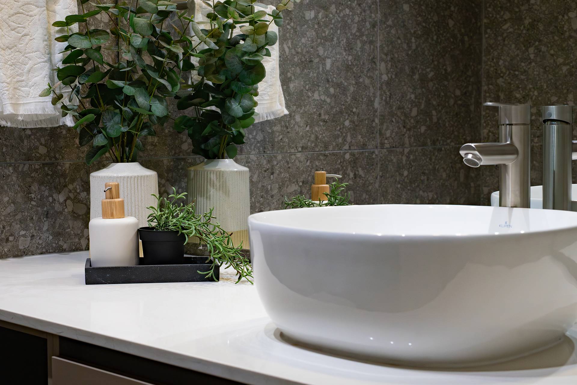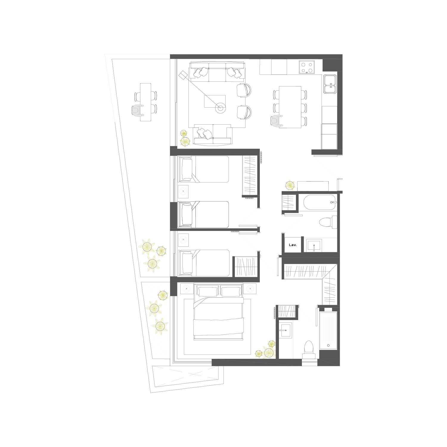 - Mesadas con cubierta de granito negro.